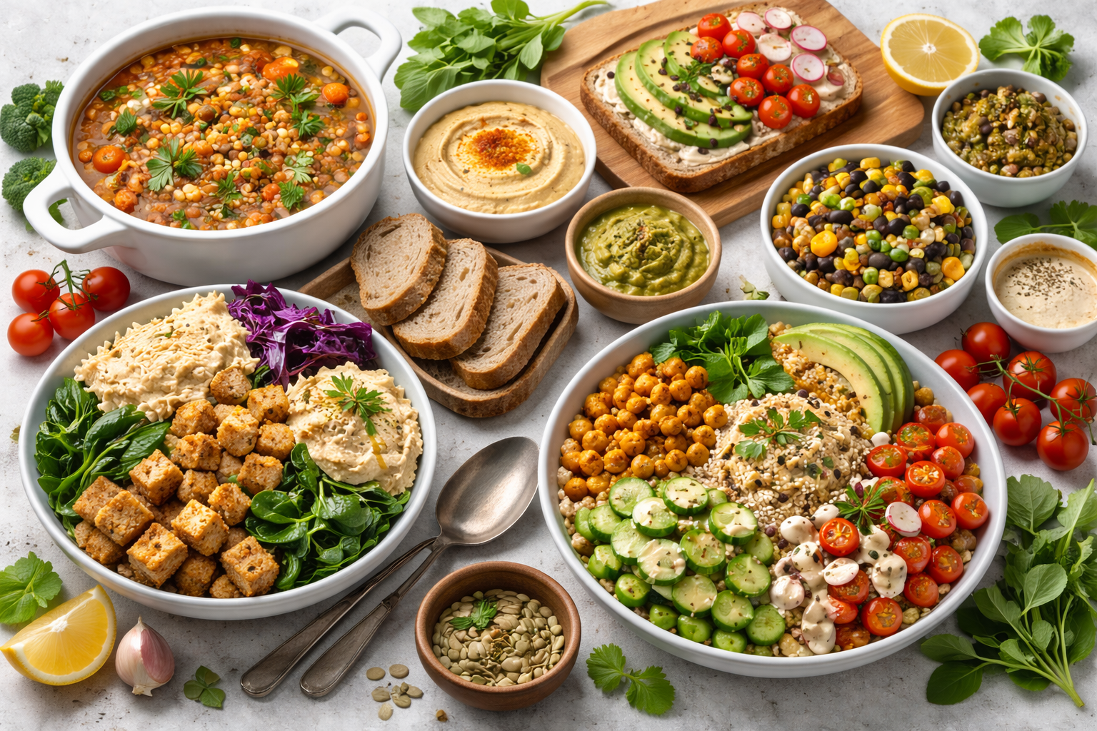 Największy skrót to łączenie sezonowych warzyw z tą samą bazą białka: raz zupa z soczewicą, raz miska z ciecierzycą, raz tofu z warzywami z patelni. Sezon się zmienia, a Ty nie musisz wymyślać całej kuchni od zera – zmieniasz tylko warzywa.
